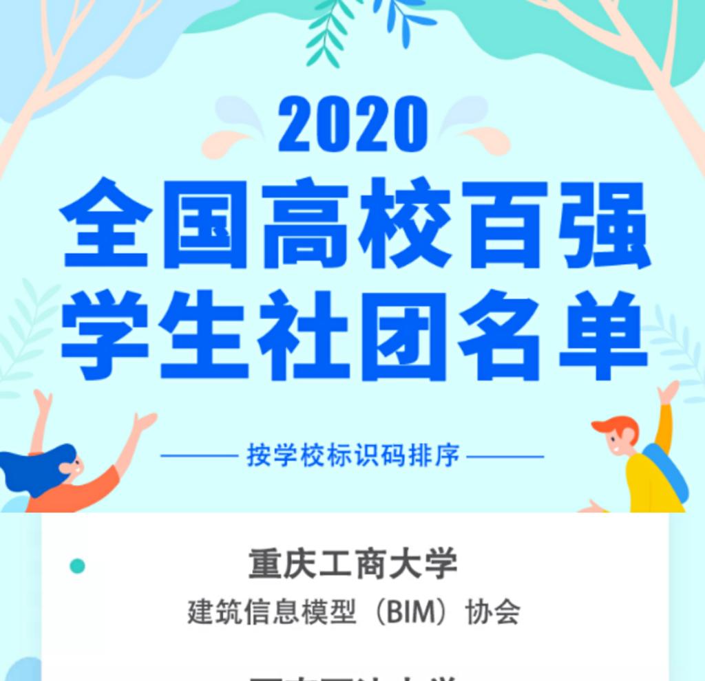 经过高校推荐、网络展示及投票、技术筛查、专家评审等环节,2020全国高校百强学生社团名单于6月15日正式公示。我校工程管理专业BIM协会成功入选全国高校百强学生社团名单。本次评比由全国学联秘书处指导、中国青年报社主办。旨在向全国范围内通过新媒体方式集中展现高校学生社团的青春活力,体现大学生社团建设成果,引导和推动大学生社团工作创新和规范化管理。环亚平台_环亚(中国BIM协会成立于2016年,由校团委和管理科学与工程学院...