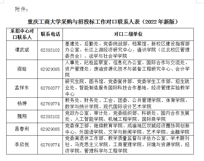 4.采招问题详询采招中心对口联系人(详见附件《采购与招投标工作对口联系人表》)。