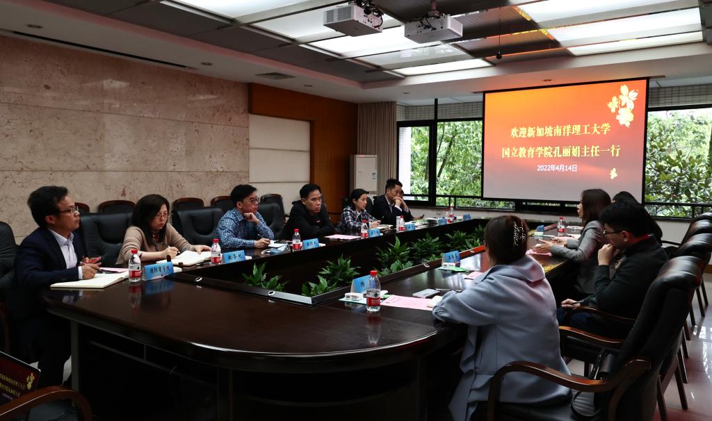 4月14日下午,新加坡南洋理工大学国立教育学院孔丽娟主任一行到校交流访问。双方在南岸校区厚德楼3019会议室进行座谈交流。我校党委书记李志雄、副校长柏群以及相关职能部门负责人参加了座谈会。