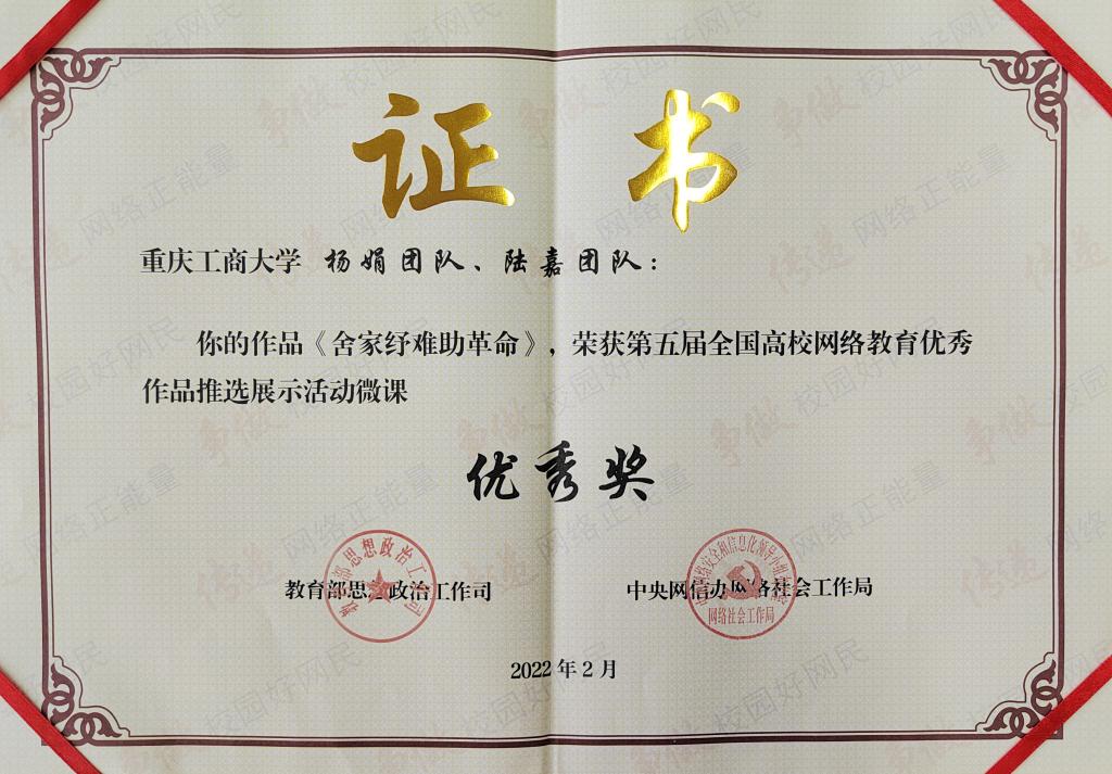 日前,由教育部思想政治工作司、中央网信办网络社会工作局联合举办的第五届全国高校网络教育优秀作品推选展示活动获奖作品名单揭晓,我校报送的作品《舍家纾难助革命》获评优秀奖。