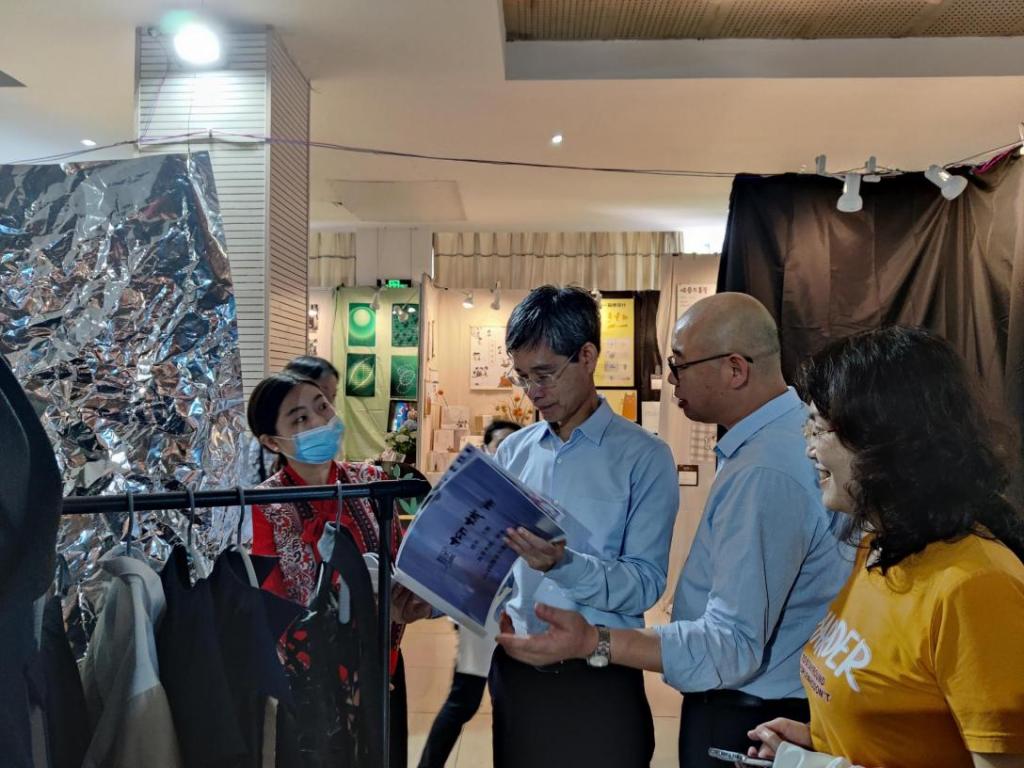 孙芳城询问了毕业设计的理念和构思、材料选择、制作工艺等方面的问题,对艺术学子在毕业设计过程中的调研精神与创意热情给予了充分的肯定。他指出,艺术学院的办学要加强校企合作,汇聚各方力量推进人才培养工作高质量发展;人才培养要注重与市场对接,适时调整专业设置与课程体系;师生创作要与行业和市场接轨,促进设计成果转化,推进创业就业。