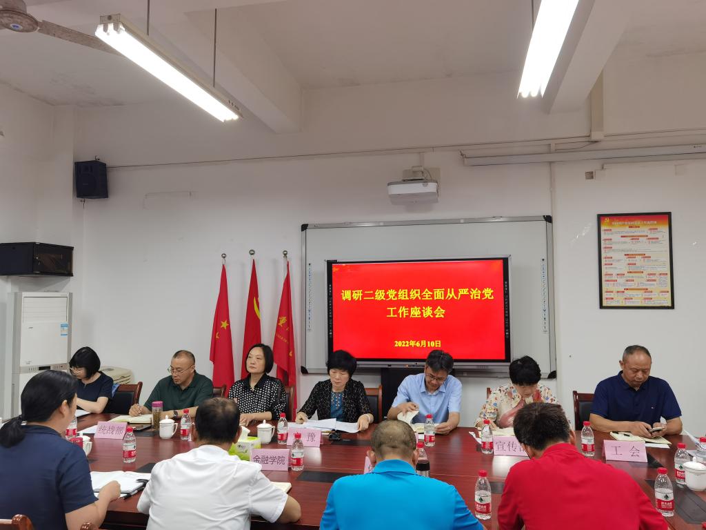 6月10日上午,学校党委副书记宋豫一行对金融学院、体育学院全面从严治党工作开展调研,纪检监察室、党委组织部、党委宣传部、党委统战部、工会、巡察办公室等部门负责人陪同调研,学院班子成员、专职组织员、统战委员、工会主席、支部书记及教师代表等参加了调研座谈会。会议由党委常委、组织部部长郑夕春主持。