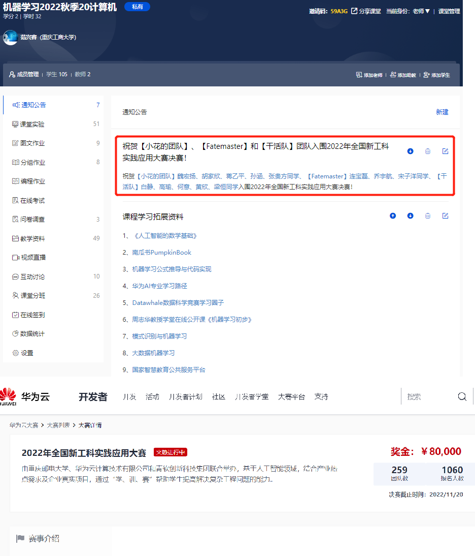 人工智能学院范兴容老师以学生为中心,深入实践“面向产出的理论课程+学科竞赛+创新创业”育人模式,采用“理论精讲+随堂测试+作业补充+代码实现+学生互评+教师复评+优秀作业评选+行业真实赛题实战+团队答辩+线上一对一答疑指导”等多种形式相互结合,依托专业实践教学平台,根据学生实际情况,贯穿理论图文作业、分组作业、课堂实验、随堂测试、互动讨论、问卷调查、赛题演练等教学重要环节,保证教学取得实效。