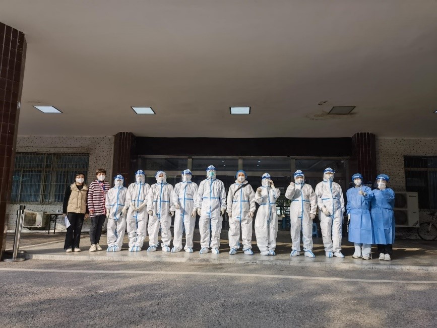 学校第一时间为江北校区增派了志愿者,他们参与流调、配合完成核酸检测,为封控楼栋学生上门单采,送餐……。当脱下密不透风的防护服时,才发现穿在里面的衣服全都湿透了,头发像刚洗过一样。这些可敬可亲的“大白”们,舍小家为大家,守护师生员工的生命安全和身体健康。