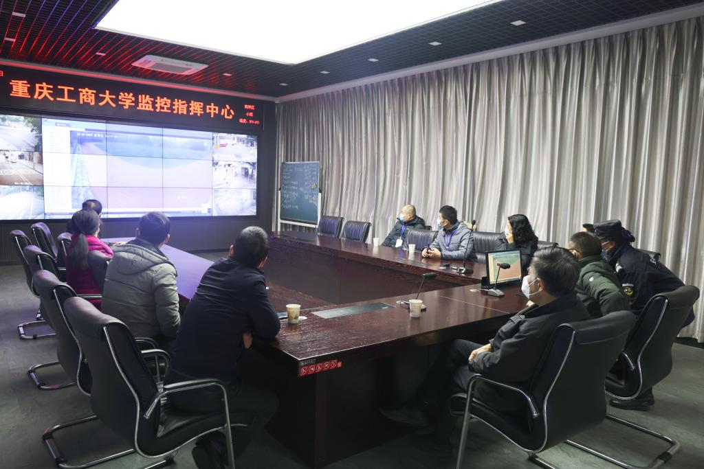在启智楼消防控制室,李志雄一行详细了解楼栋消防安全运行情况、消防设施建设情况,询问了值班人员消防值班落实情况。李志雄强调,消防安全是校园安全的重中之重,要加强消防设施设备日常维护,确保消防设施设备联动,全力做好校园消防安全工作。随后,李志雄一行来到保卫处监控指挥中心,调阅了南岸校区、兰花湖片区、江北校区等三个校区校园重点安全区域、学生生活区域和校园周边围栏的实时监控。李志雄谈到,一定要高度重视校园安全稳定工作,认真排查问题,提前准备预案,确保营造良好的校园安全环境。