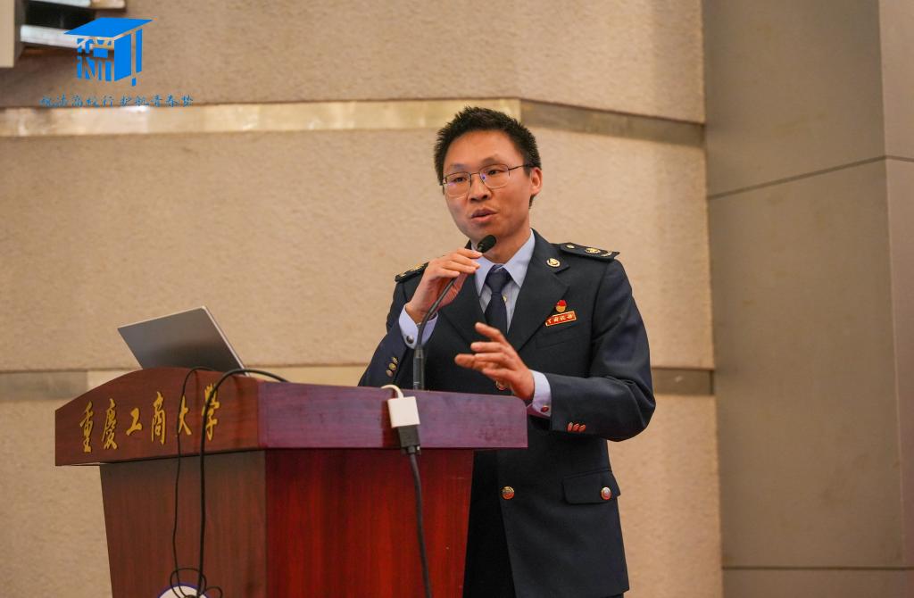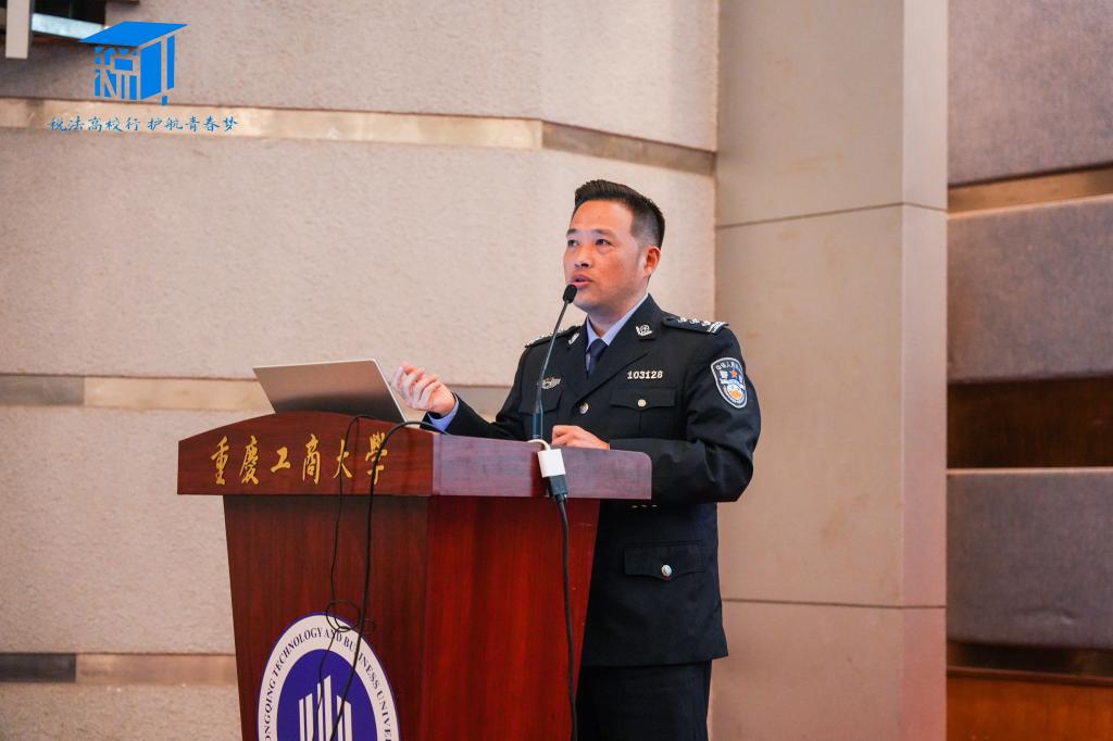 最后,重庆市公安局南岸分局南坪镇派出所、反诈支队金牌讲师盖洪警官以“识别虚假身份,慎防各类诈骗”为主题进行了反诈骗宣讲。盖警官列举多个电信诈骗案例,生动形象地向学生们介绍了通讯网络诈骗及其特点,揭示了通讯网络诈骗发展很迅速、手段更新快、非接触性、跨国跨境突出等特点。此外,宣讲过程中,盖警官还调动同学们进行问答互动,提高了同学们对本次宣讲的参与度和对常见诈骗情境的警觉性。