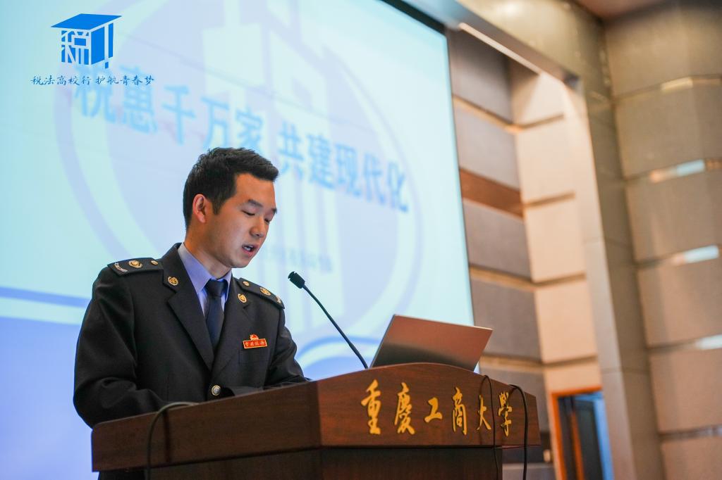 接着,经开区税务局法制科一级行政执法员李珍向同学们讲解了部分常用税收知识,介绍了一些税收优惠政策。李珍执法员首先向同学们说明了税收的重要意义和依法纳税的必要性,紧接着阐述了大学生入职前一定要了解的税收知识,包括个税和社保的含义、内容、范围、计算方式。并且结合大学生兼职、入职等场景,进一步说明大学生需要了解的个税和社保相关知识。最后他向同学们介绍了个人所得税优惠政策、就业创业优惠政策、其他税收优惠政策,希望同学们关注税收政策、学习并运用税收知识。