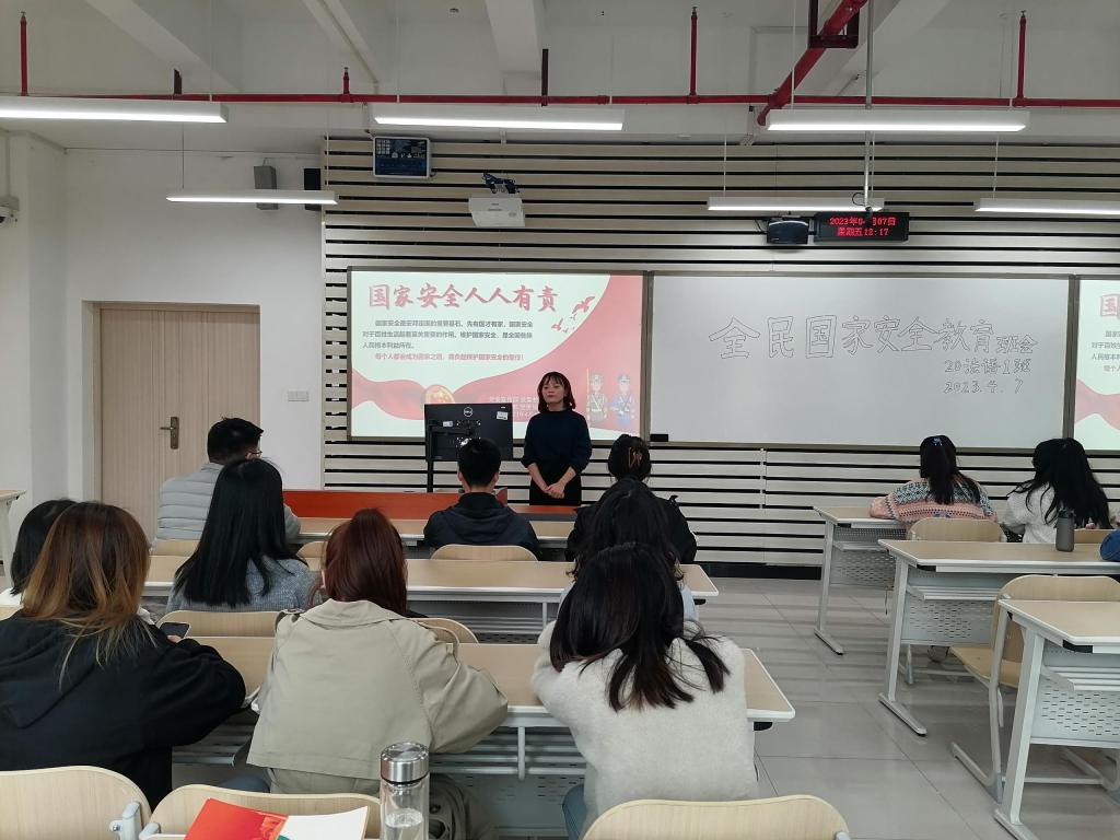 4月7日上午,外国语学院2020级法语1班各班召开主题班会,辅导员黄颖婕老师依次讲解了国家安全的基本知识、危害国家安全的行为、如何维护国家安全、谁来保护国家安全等内容,国家安全基本常识进行普及,通过生动的案例让同学们对国家安全有了更全面深入的了解,明确了维护国家安全对国家、社会、家庭、个人的重要性。2020级法语1班班长曹永衡深有感触:“民为邦本,本固邦宁,国家安全没有局外人。互联网时代,网络信息纷繁复杂,我们广大青年要增强国家安全敏感性,提高信息辨别能力,牢固树立国家安全利益高于一切的观念,为保障国家安全、筑牢人民防线而努力。”