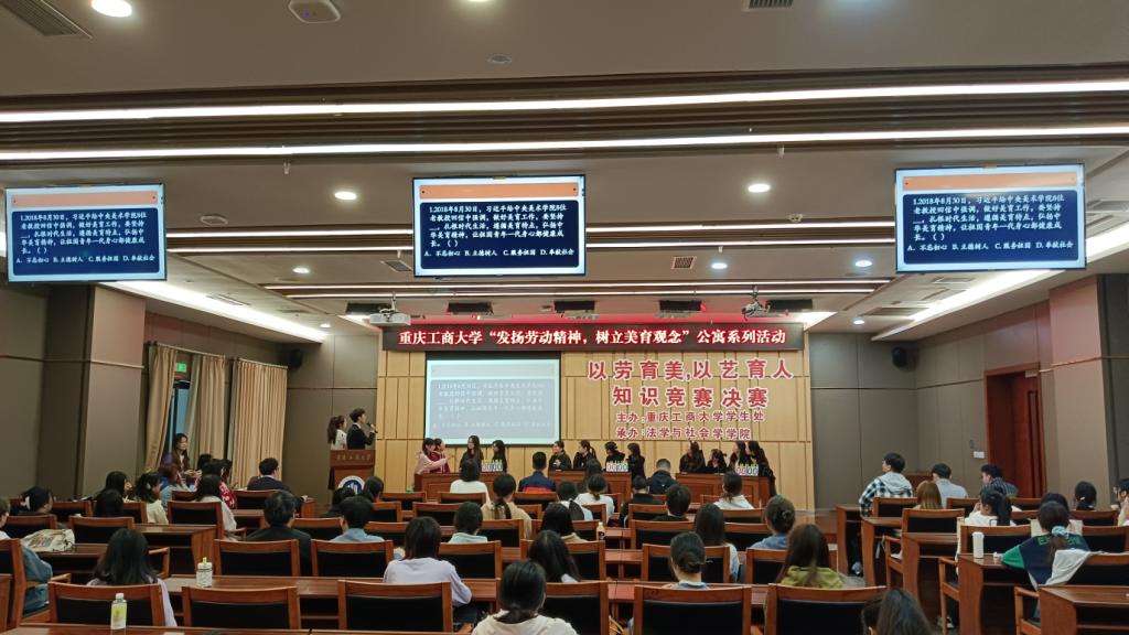 4月24日,由学校党委学工部主办、法学与社会学学院承办的环亚平台_环亚(中国“发扬劳动精神,树立美育观念”公寓系列活动之“以劳育美,以艺铸德”知识竞赛决赛在图书馆一楼会议室举行。比赛共分为初赛、复赛、决赛三轮,全校学生以楼栋为单位组队参赛。初赛共有18支队伍报名参赛,经过激烈角逐,6组选手突出重围,进入决赛现场。