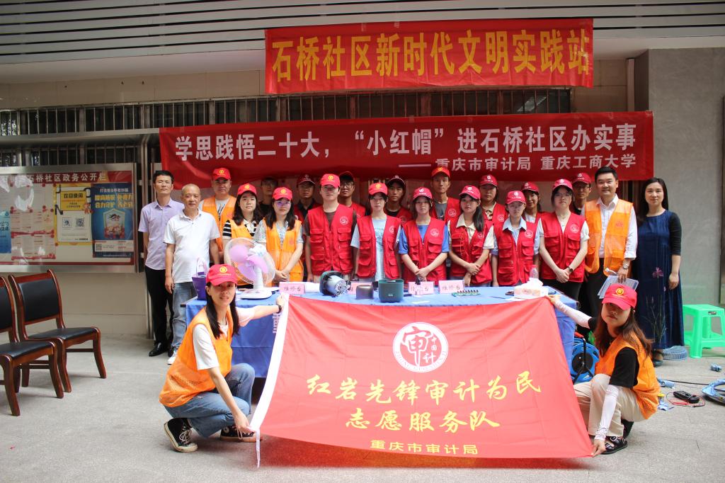 为了深入开展学习贯彻习近平新时代中国特色社会主义思想主题教育,认真落实习近平总书记关于“践行宗旨为民造福”的讲话要求,5月13日,重庆市审计局经责二处的工作人员与我校人工智能学院、党政办公室的师生一起走进南岸区弹子石街道石桥社区,联合开展“我为群众办实事”实践活动。