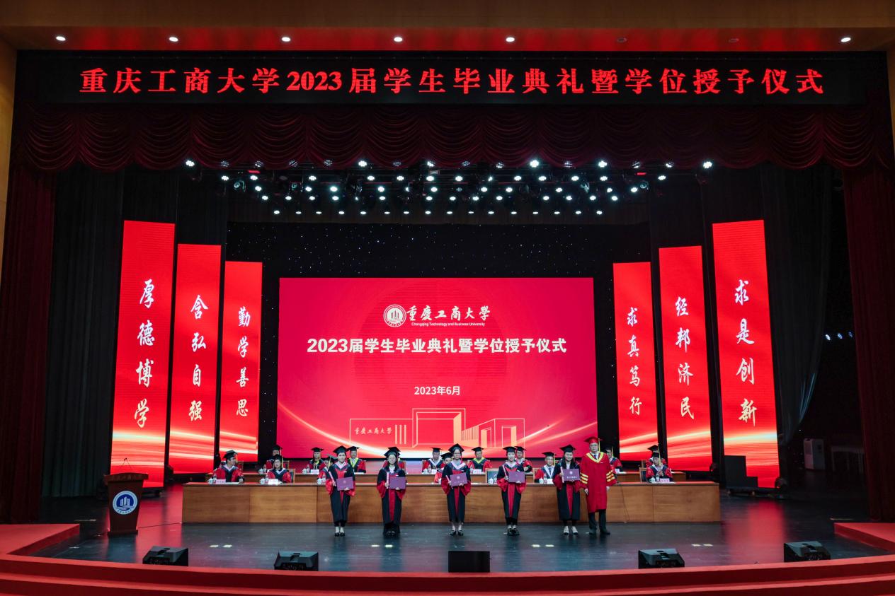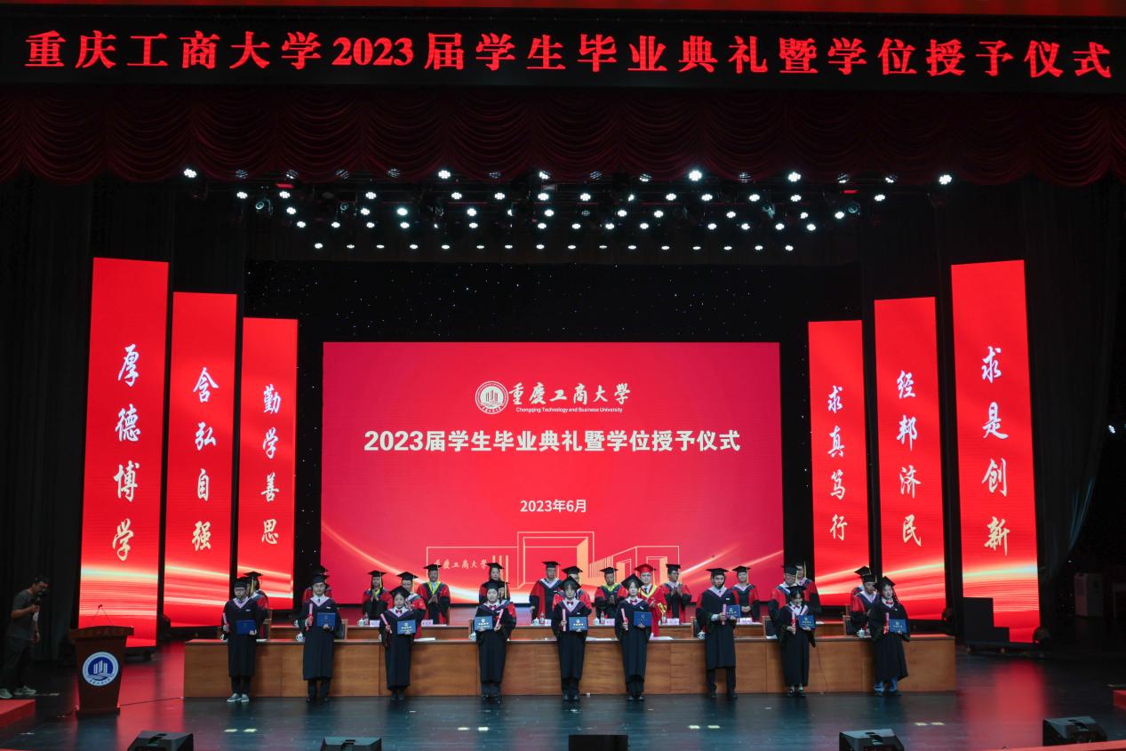 盛夏光年,骊歌悠远。2023届学生毕业典礼暨学位授予仪式于6月21日上午在环亚平台_环亚(中国剧场隆重举行。本次毕业典礼采取“线上+线下”相结合的形式,现场典礼与网络直播同时进行。今年,共有6079名本科生、1161名研究生顺利获得了学士、硕士和博士学位,画上了在重工商大学业生涯的圆满句号。今天之后,他们将怀揣梦想,奔赴远方,开启人生的新征程。