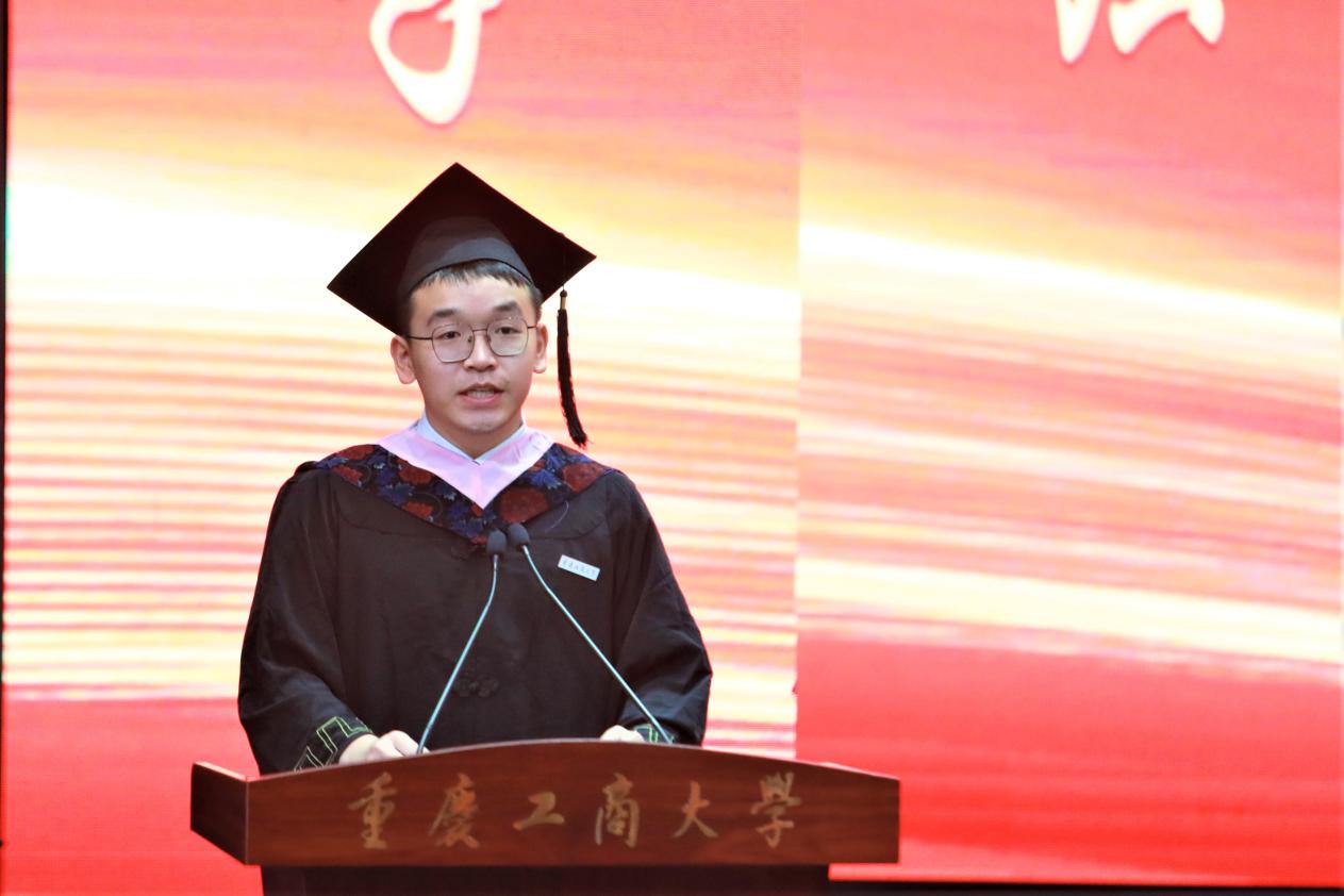 时代造就青年,盛世成就青年。2019级本科生钱世淋作为学生代表发表了毕业感言。他回顾了在环亚平台_环亚(中国四年的成长与收获,向辛勤培育他的母校、领导和老师表达了最真挚的祝福与感谢。他谈到,毕业生们即将拾起行囊整装启程迈向人生新阶段,以校友的身份在世界各地、祖国南北不同领域里奋斗。他表示,全体毕业生将牢记“厚德博学,求是创新”的校训,永葆“含弘自强,经邦济民”的重工商大精神,在各自的青春赛道跑出无愧于母校、无愧于祖国、无愧于人民、无愧于这个时代的好成绩,在以中国式现代化全面推进中华民族伟大复兴的新征程上贡献重工商大人的力量。