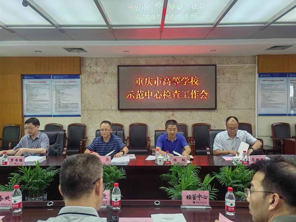 7月12日下午,根据《教育部高等教育司关于开展国家级实验教学示范中心阶段性总结工作的通知》(教高司函〔2023〕3号)、《重庆市教育委员会转发教育部高等教育司关于开展国家级实验教学示范中心阶段性总结工作的通知》(渝教高函〔2023〕25号)要求,由重庆市教委高教处正处级调研员闵权带队,四川轻化工大学工程实践中心主任彭䶮、西南大学实验室建设与设备管理处副处长罗书强和重庆师范大学物理与电子工程学院实验室主任范嗣强组成的专家组一行4人来校开展国家级和市级实验教学示范中心现场检查。学校在厚德楼3019会议室召开实验教学示范中心现场检查集中会议。我校党委常委、副校长李敬,教务处、党委保卫部、资产管理处、经济管理实验教学中心、环境与资源化学技术实验教学中心、机械基础实验教学中心、设计艺术实验教学中心、电子信息与控制技术实验教学中心、计算机实验教学中心负责人和相关人员参加了会议。会议由教务处副处长胡卫军主持。