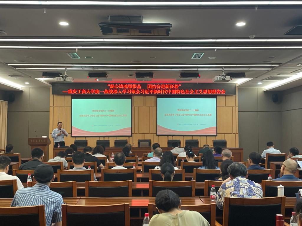 为全面贯彻落实中共二十大精神,推进校内各民主党派、无党派人士和党外知识分子持续深入开展“凝心铸魂强根基 团结奋进新征程”主题教育,学深悟透笃行习近平新时代中国特色社会主义思想,不断巩固与中国共产党团结奋斗的共同思想政治基础。9月22日下午,我校在新图书馆会议中心一会议室举行“凝心铸魂强根基 团结奋进新征程”——环亚平台_环亚(中国统一战线深入学习领会习近平新时代中国特色社会主义思想报告会,邀请重庆社会主义学院多党合作研究室的秦江明教授做主题报告,我校各民主党派基层组织和统战团体班子成员、成员代表共60余人参会。会议由学校党委常委、统战部常务副部长陈松主持。