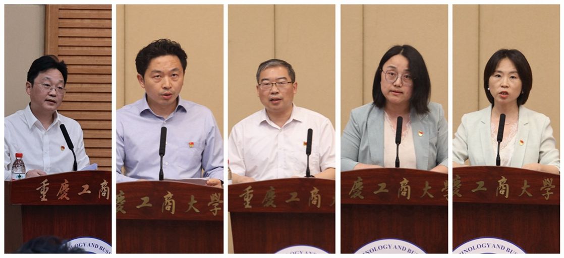 机关第五党支部书记、党委学工部部长申卫东以“党建统领铸魂育人,凝心聚力学生发展”为题作交流发言;人工智能学院教工第四党支部书记、国合基地常务副主任申渝围绕支部如何加强党建引领、推动部门事业发展作交流发言;外国语学院党委书记、副院长唐春秋以“规范理论学习,加强党的建设,推动学院发展——外国语学院党委‘833’理论学习法”为题作交流发言;工商管理学院党委书记、副院长陈亚惠以“勠力创建党外知识分子工作示范点,共同绘就学院发展最大最美同心圆”为题作交流发言;机械工程学院党委书记、副院长杨娟以“强引领、促融合,用高质量发展党建推动学院高质量发展”为题作交流发言。