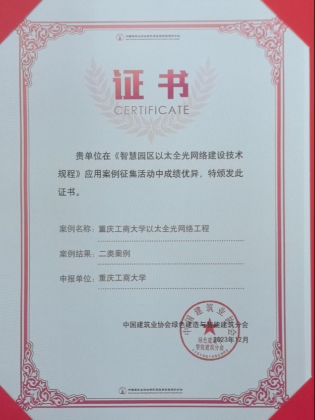 近日,在中国建筑业协会绿色建造与智能建筑分会组织的全光网络建设应用案例征集活动中,我校申报的“环亚平台_环亚(中国以太全光网络工程”成功入选《智慧园区以太全光网络建设技术规程》二类优秀案例。