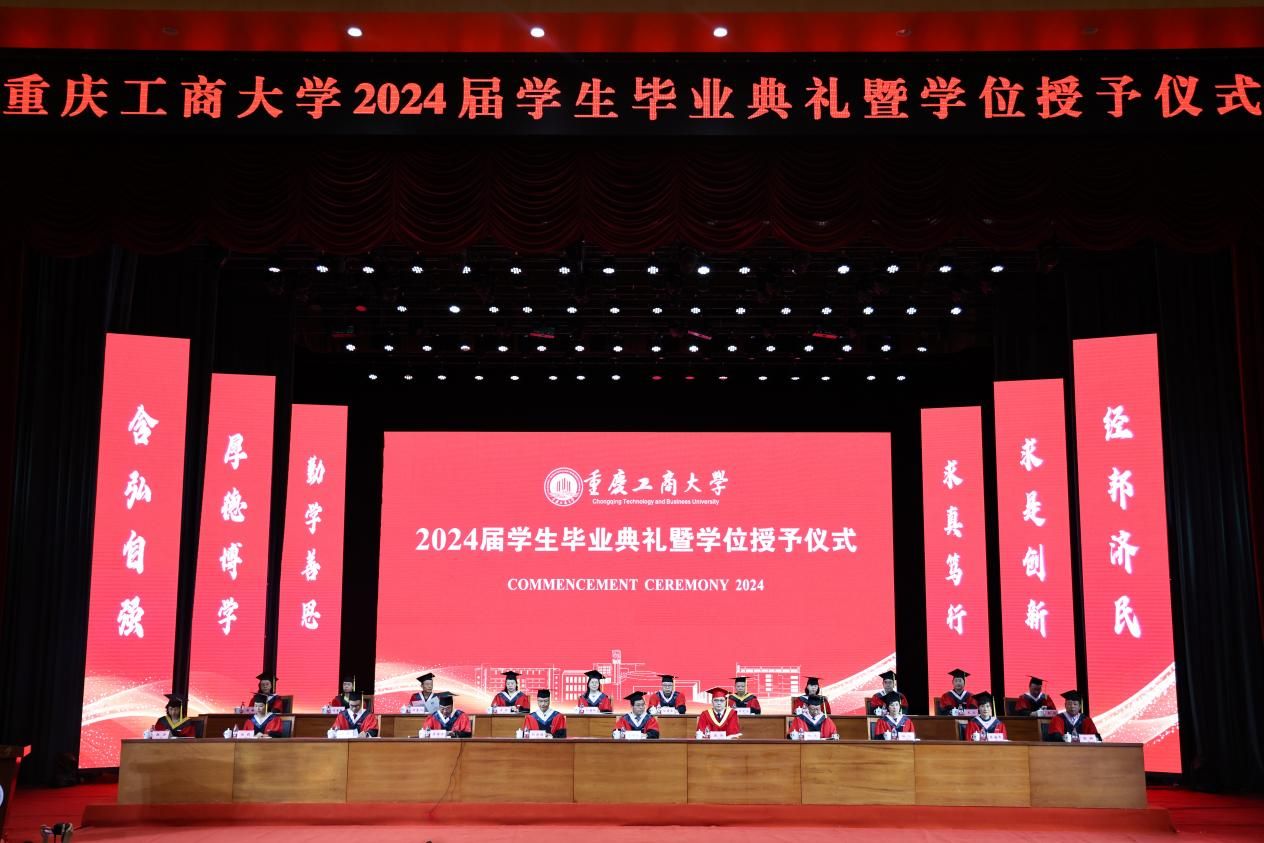 骊歌悠扬,逐梦启航。6月20日上午,学校举行2024届学生毕业典礼暨学位授予仪式,庆祝8000余名本硕博毕业生圆满完成在学校的求学生涯,开启人生崭新篇章。学校领导、学校学位评定委员会委员代表、专家教授代表,教师代表、校友代表、家长代表、毕业生代表齐聚一堂,共同见证这一美好时刻。校长温涛以“追寻有生命力的人生”为题为毕业生们上在重工商大的“最后一课”。授位仪式由党委常委、副校长李国军主持。