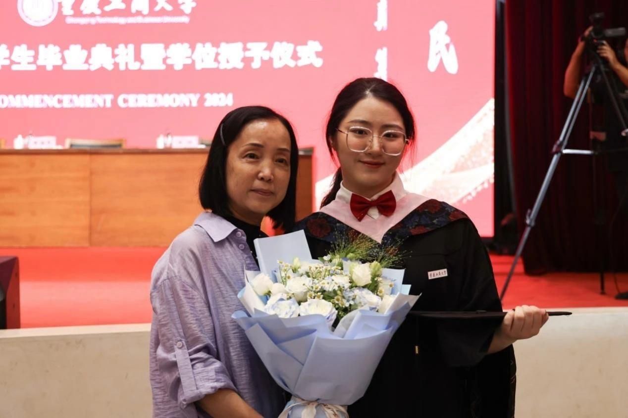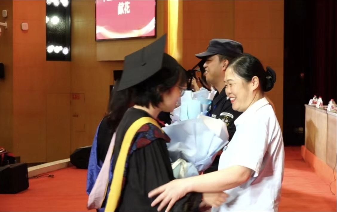 陪伴是最长情的告白,相守是最温暖的承诺。在成长道路上,父母始终扮演着重要角色。“我希望你被爱着,我希望你要快乐,我希望我的双手可以为你挡着风”。当这首歌声响起,温暖来袭,感动全场。毕业生代表为父母送上鲜花和拥抱,感恩父母的养育之恩。看着儿女的成长,不少家长也红了眼眶。
