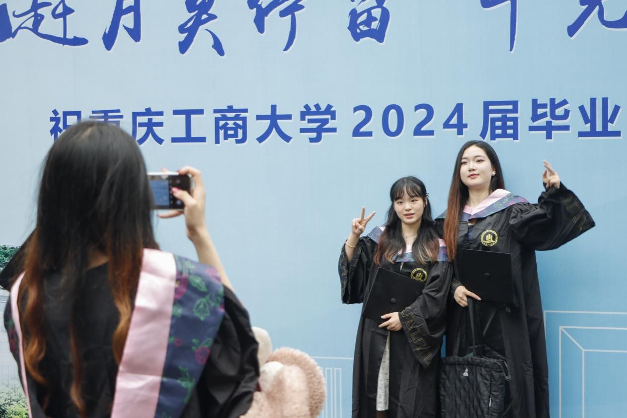“作为重工商大校园最高‘级别’的学长学姐,你们突破自我,17%的同学选择在国内外高校继续深造,52%的同学留在成渝地区双城经济圈建设这片西部沃土,31%的同学奔赴西部陆海新通道、长江经济带、‘一带一路’,到祖国最需要的地方建功立业。”温涛骄傲地为毕业生们点赞!