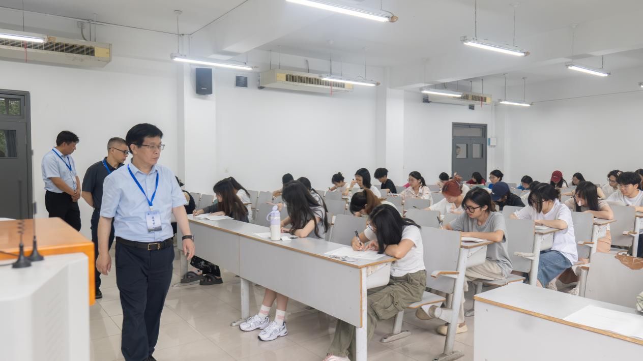 从本周开始,学校进入期末集中考试阶段。6月24日上午,学校党委书记曾维伦,党委常委、副校长李敬带领教务处、教学质量监督与评估办公室、马克思主义学院等部门、学院负责同志,前往南岸校区博智楼深入各考场开展期末考试巡考工作。