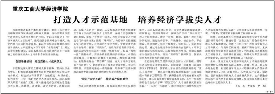 《光明日报》报道经济学院经济学拔尖人才培养工作