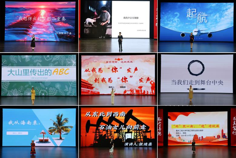 决赛中,2024级的同学们紧扣“肩负使命,迎战未来”主题,从不同角度去讲述了家乡、成长以及青春追逐梦想的故事,现场气氛热烈、掌声雷动。其中,通识学院新闻传播学类专业杨雅淋同学以《从我为“你”发声,到从我为“你”发声》为题,讲述作为新闻专业大学生,决心做时代的见证者和记录者,立志以新闻人的素养为时代的改革、变化和进步发声,让历史和人民看到青年的担当。艺术学院航空服务艺术与管理专业鲍祥瑞同学以《我的声音有翅膀》为题,分享自己如何追求主持梦与蓝天梦,鼓励新生同学勇担青年责任,用青春的智慧和汗水打拼出一个更加美好的中国。参赛选手们用饱满的热情和真挚的感情表达了新时代青年的坚定信念,讲述了青春追梦的心声,展现了青春肩负使命的担当,展示青春迎战未来的勇气和决心。