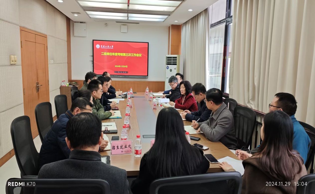 11月29日,学校在厚德楼4002会议室召开2024年二级单位年度考核工作会,学校党委副书记宋豫主持会议并作讲话。