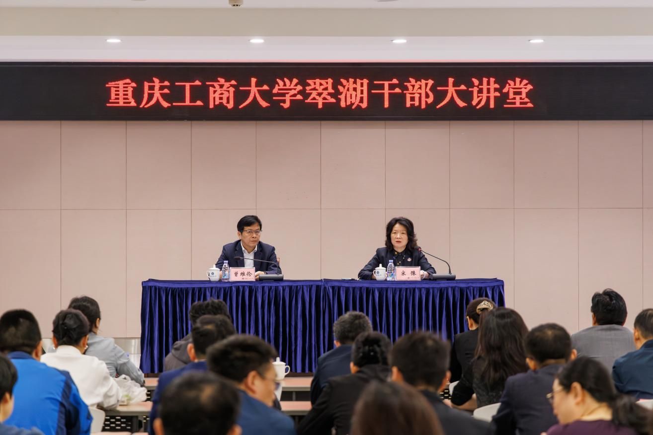 4月25日上午,我校翠湖干部大讲堂(第一期)在南岸校区学生事务中心B101报告厅正式开讲。学校党委书记曾维伦出席会议并讲话。学校党委副书记宋豫主持会议。