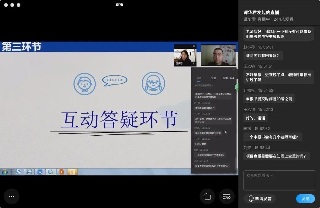 为加强我校研究生科研创新能力培养,鼓励在校研究生积极承担创新型研究课题,4月24日下午,研工部举办了研究生“博闻沙龙”第三期之“创新型科研项目申报那点事儿”线上直播活动。副校长李国军,研工部副部长王燕,研工部董承婷老师以及300余名研究生参加了活动。