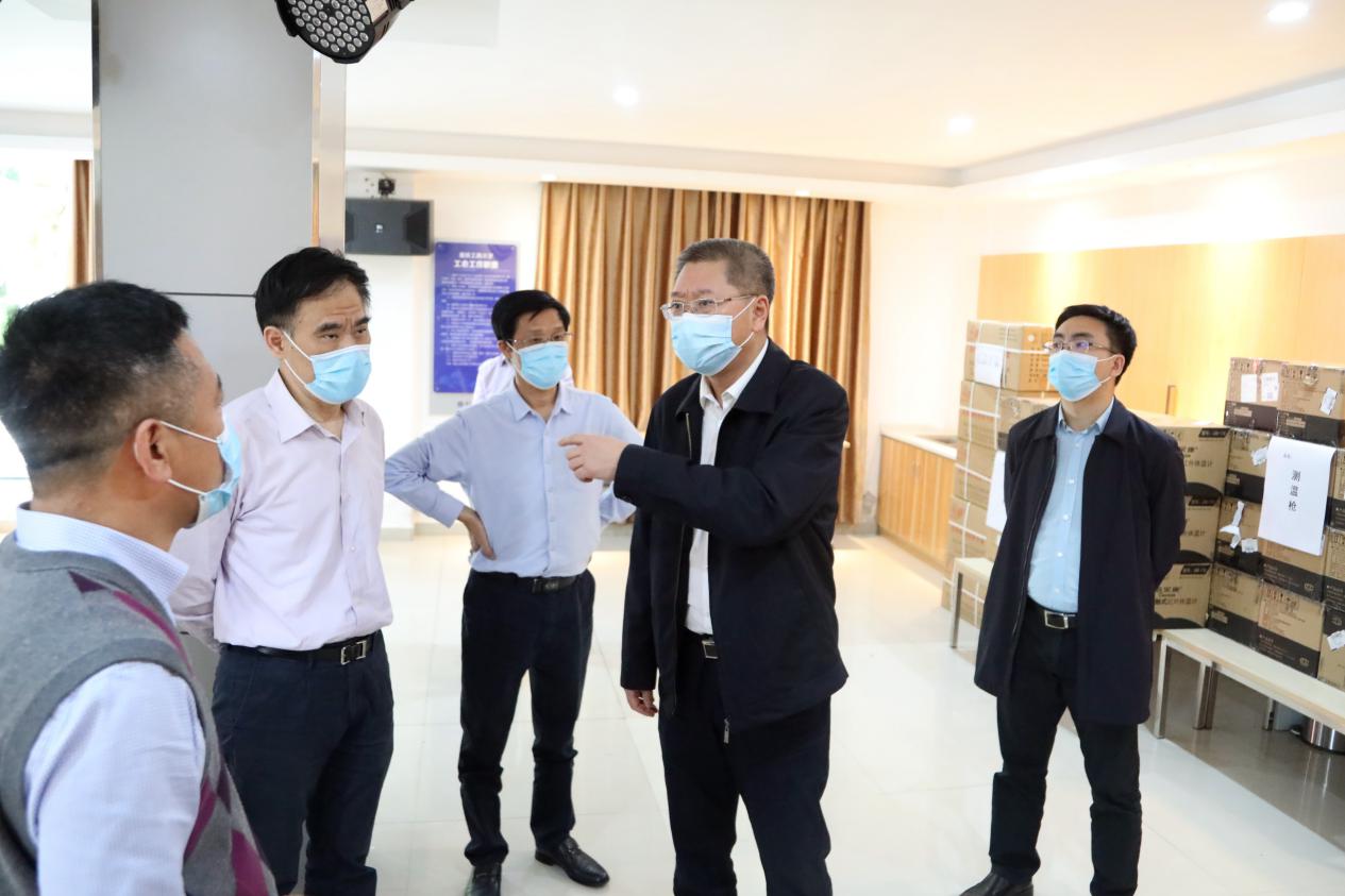 4月29日,市委教育工委书记、市教委主任黄政一行来到环亚平台_环亚(中国检查疫情防控及开学前准备工作,黄政走进学校食堂,了解食堂取餐用餐、错峰就餐等情况,检查饭菜质量及食品卫生;检查学校开学前防控物资储备和设置隔离点情况,在学校健康观察点向医务人员表示感谢。黄政要求,一定要把疫情防控工作作为当前重中之重的任务,切实保障师生员工的身体健康和生命安全,从严从实从细从快落实好各项防控措施,坚决打赢高校开学复课这场疫情防控阻击战。