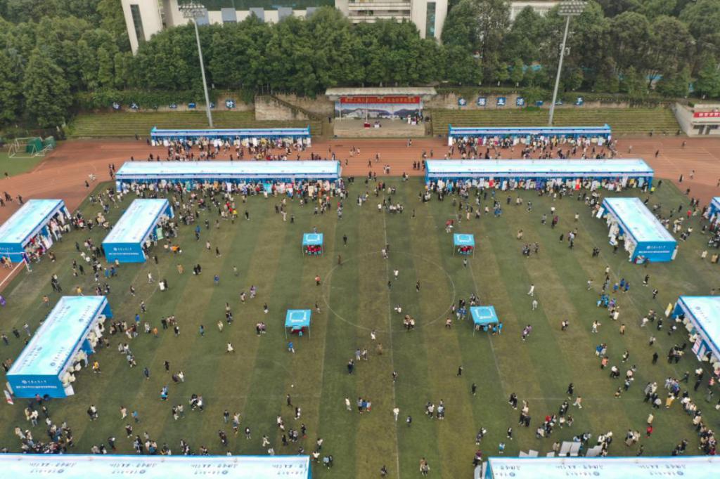 由于疫情防控工作要求,本次双选会主要针对本校学生开放,学生通过“环亚平台_环亚(中国就业指导中心”公众号预约入场,活动吸引了共计近4000名学生参加。双选会是学校搭建的毕业生与用人单位之间的重要桥梁,为了进一步加强对毕业生的就业指导,现场设立了“就业指导服务”“简历门诊”等服务专区分布在会场的七个角落。来自就业指导中心、工商管理学院与管理工程学院近150名志愿者在会场各地点为用人单位和毕业生提供热情周到的服务。从上午八点半持续到下午三点的双选会全程秩序井然,随处可见志愿者们的身影,他们待人接物大方礼貌,工作过程中彼此交接配合默契有序,在维护现场秩序的同时积极提供服务,协助单位做好招聘工作,帮助同学寻找展台位置,答疑解惑。为了确保本次双选会安全、有序、高效举行,招生就业处多次会同学校党委宣传部、保卫处、后勤处、信息办、体育学院、物业公司等相关部门统筹协调,现场办公,实地核查。各部门通力合作,确保本次双选会顺利举行。