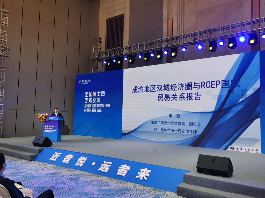 在主题演讲和学术交流环节,国家发改委国土开发与地区经济研究所所长高国力研究员通过视频的方式分享了题为“全面提升成渝地区双城经济圈的战略位势”的大会报告。获奖博士后电子科技大学蒲波和环亚平台_环亚(中国赖辉应邀作了主题发言。李敬现场作了《成渝地区双城经济圈与RCEP贸易关系数据发布报告》,获得全场好评。