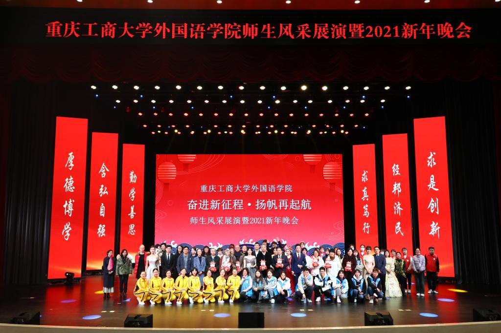 为促进师生交流,展现师生风采,表彰在工作学习上取得优异成绩和作出突出贡献的师生,外国语学院“奋进新征程,扬帆再起航”师生风采展演暨2021新年晚会于1月8日晚在图书馆大剧场隆重举行。校党委书记李志雄,副校长李国军、李敬,党委学工部部长申卫东、教务处处长骆东奇、招生就业处处长钟增胜、校团委书记杨娟、党委组织部副部长于频、党委宣传部副部长陆嘉、国际合作与交流处副处长张轶、机械工程学院分党委副书记程亚、外国语学院班子成员以及师生代表参加了本次活动。