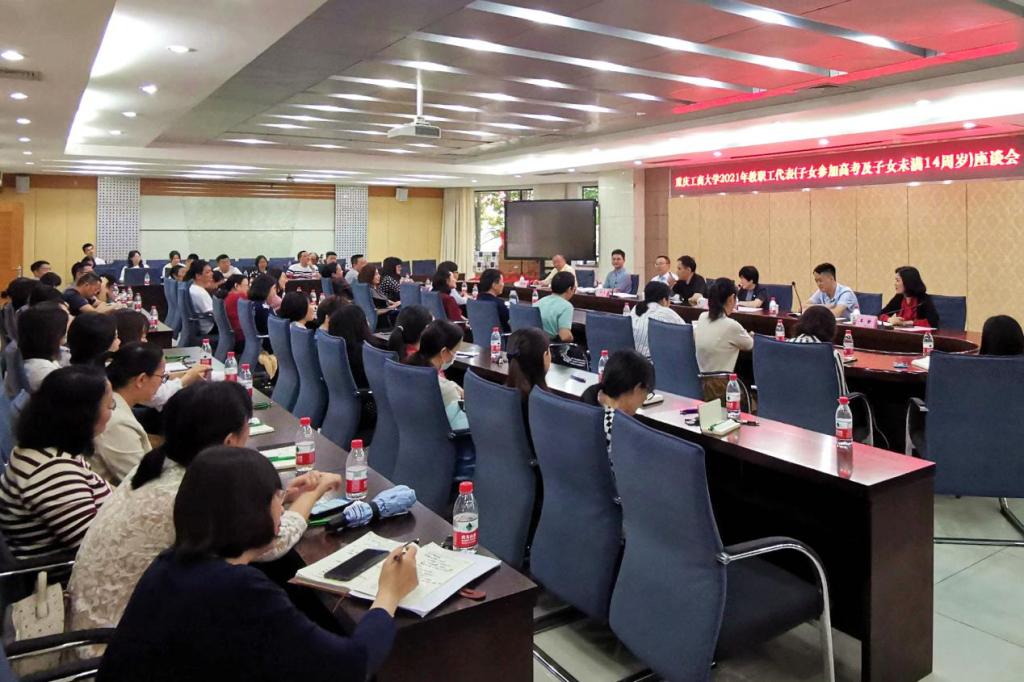 5月20日上午,我校2021年教职工代表(子女参加高考及子女未满14周岁)座谈会在厚德楼2017会议室顺利召开。校党委书记李志雄、党委副书记、工会主席宋豫出席座谈会,相关职能部门负责人、2021年子女参加高考的教职工和子女未满14周岁的80余名教职工代表参加了会议。会议由宋豫主持。