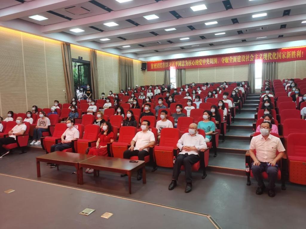 艺术学院、现代国际设计艺术学院组织师生在兰花湖片区学术报告厅集中观看。