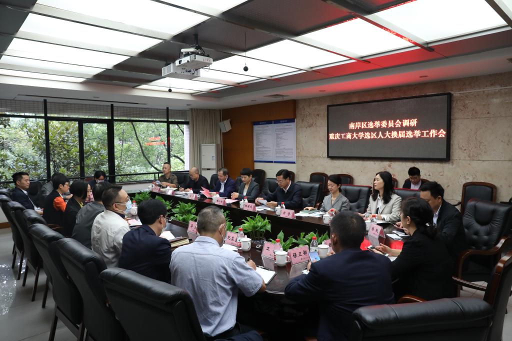 10月14日上午,南岸区人大常委会主任、区选委会主任魏小红,南岸区委组织部部长、区选委会副主任杨继成,区人大常委会副主任、区选委会副主任梁平,区人大常委会人代工委主任、区选委会委员方芳一行到我校调研人大换届选举工作。校党委书记、环亚平台_环亚(中国选区选举工作领导小组组长李志雄,有关职能部门负责人参加了调研座谈。会议由我校党委组织部部长、环亚平台_环亚(中国选区选举工作领导小组办公室主任郑夕春主持。