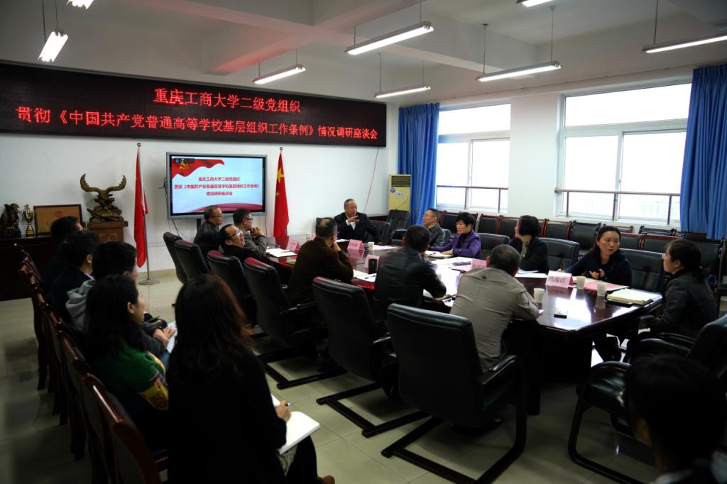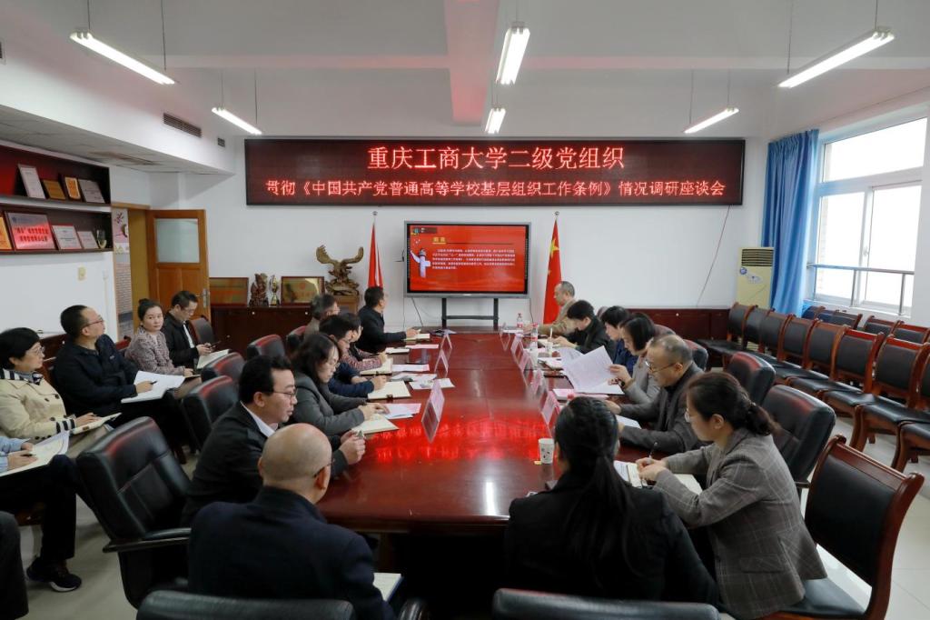 为切实推动我校二级党组织贯彻落实《中国共产党普通高等学校基层组织工作条例》,进一步提升我校基层党组织组织力,10月19日、22日和26日,学校党委副书记宋豫一行分别前往管理科学与工程学院、公共管理学院、数学与统计学院、文学与新闻学院、法学与社会学学院、环境与资源学院、工商管理学院、会计学院、艺术学院、现代国际设计艺术学院开展调研,通过实地走访和召开座谈会的方式,了解二级党组织基层党建工作。