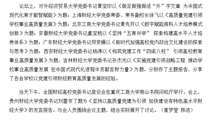 新华网报道首届高等财经教育高质量发展论坛暨首届财经高校党委书记论坛