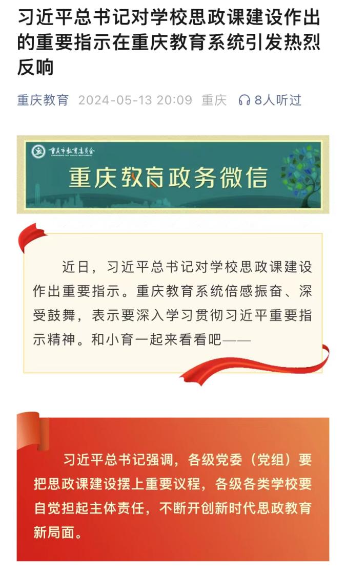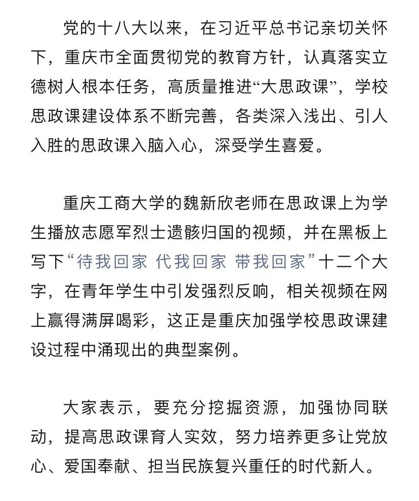 近日,市教委微信公众号刊登我校教师深入学习贯彻习近平总书记对学校思政课建设作出重要指示精神的心得体会。