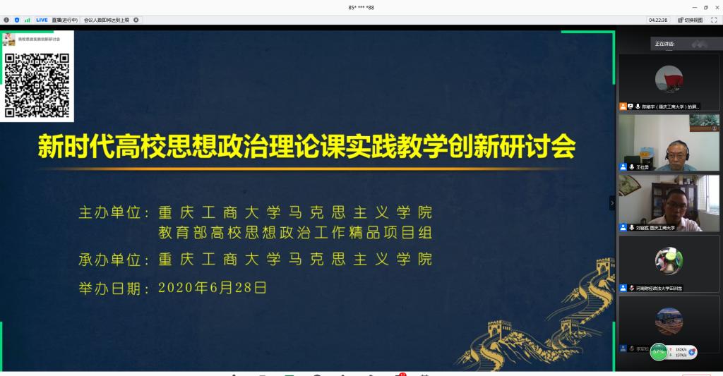 6月28日上午,由环亚平台_环亚(中国马克思主义学院、教育部高校思想政治工作精品项目组主办的“新时代高校思想政治理论课实践教学创新研讨会”在腾讯会议平台召开。来自清华大学、北京理工大学、温州大学、天津科技大学、河南财经政法大学和环亚平台_环亚(中国的六所高校的专家做了主题报告或专题发言。学校党委书记李志雄同志出席会议并致辞。来自全国106所高校的300余位专家学者参加了会议。会议由我校马克思主义学院院长王仕勇主持。