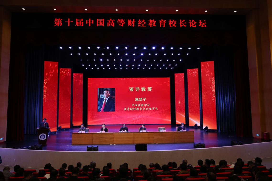 中国高教学会高等财经教育分会理事长、对外经贸大学原校长施建军代表分会致辞,他指出,中国高等财经教育校长论坛是高等财经教育学会的重要品牌项目,每届论坛均紧密结合国家发展的大政方针和我国高等教育的客观现实,国内外经济社会形势等背景确定研讨主题,充分体现了论坛的针对性、指导性、理论性和实践性。他表示,本届论坛在继承中创新设置了校长沙龙等环节,形式更加丰富,旨在聚众人智慧之光,纳众校改革之策,集众家创新之力,写好新时代中国高等教育的奋进之笔。