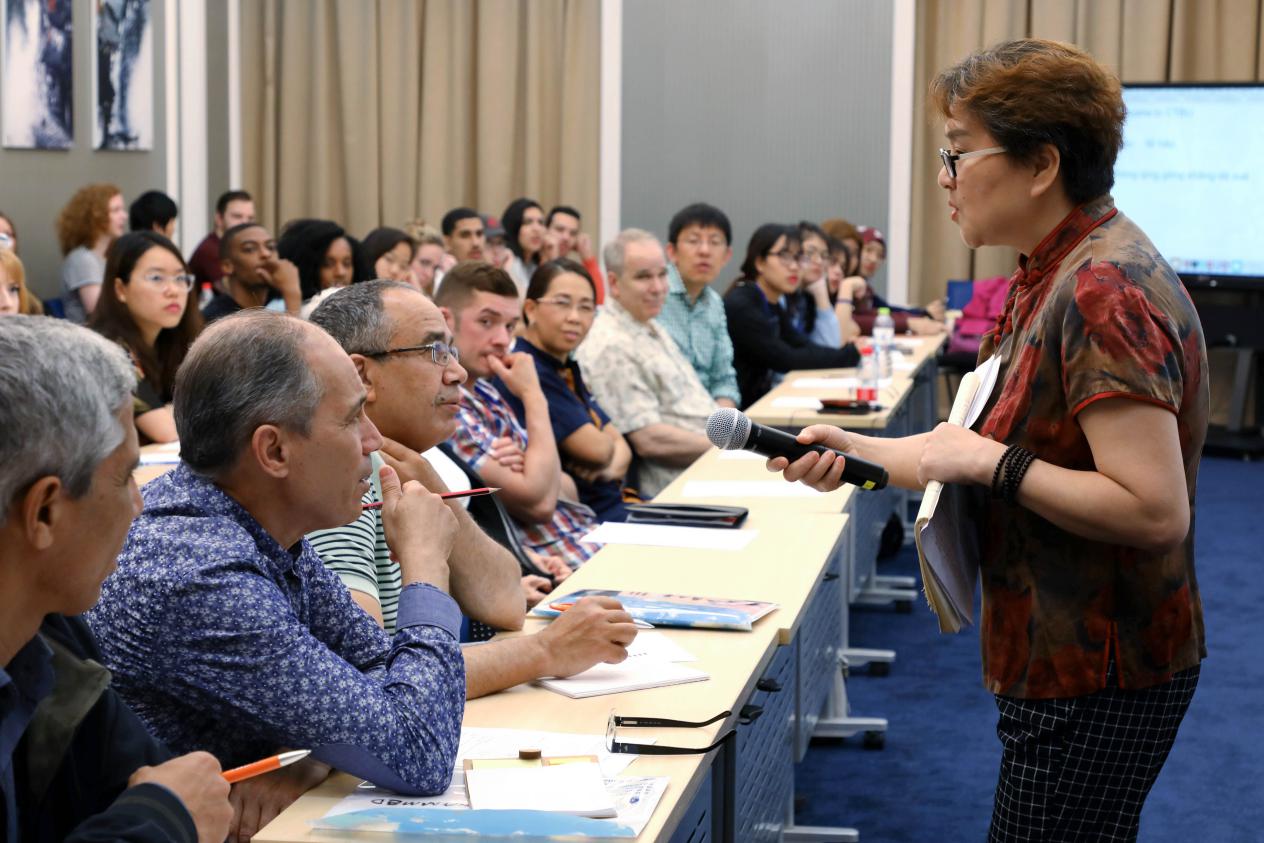 为了在有限的时间内,教会留学生学会更多的汉语。授课老师认真准备课程,他们从最基础的汉语拼音开始,指导留学生正确发音,并让大家相互学习、相互训练;老师还教授了诸如“对不起”“没关系”“谢谢”等日常用语,让大家在学习汉语的同时,了解我们中国的礼仪之交。