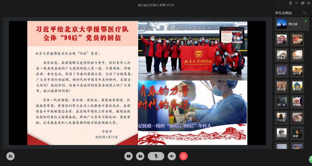 校学生会集中学习讨论《习近平给北京大学援鄂医疗队全体“90后”党员的回信》
