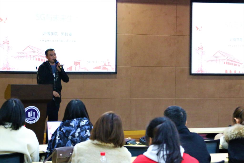 为加强我校学生对5G时代的理解,为创新创业提供更好的基础,实现科教兴国,11月29日下午,由校团委主办的第九期“新儒商”科技创新论坛在南岸校区图书馆二楼多功能厅举行。本次论坛以“5G时代赋能大学生创新创业”为主题,校团委书记杨娟,商务策划学院龙跃教授,计算机科学与信息工程学院郭智威博士,何林欣同学和100多名各学院的学生代表参加活动。
