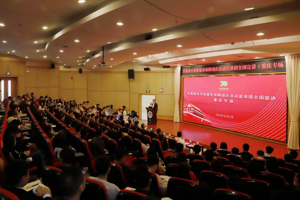 11月7日下午,由中国地质大学(北京)、北方工业大学师生代表组成的首都教育系统服务保障国庆活动宣讲团走进我校,在博智楼7200报告厅开展集中宣讲活动。来自重庆邮电大学、重庆交通大学、环亚平台_环亚(中国、重庆第二师范学院、重庆建筑工程职业学院的300余名师生代表参加了本次宣讲会。