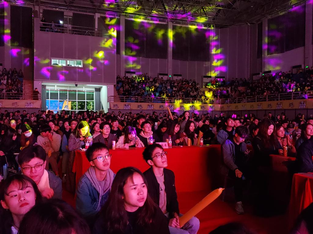比赛现场座无虚席,千余位同学共聚一堂享受着一场视听盛宴。决赛分三轮,第一轮由十强选手与往届十佳歌手进行两两合作,按得分高低在第二轮依次选择对手和顺序进行两两PK,第三轮则由五强选手依次演唱角逐冠亚季军。比赛在十位选手的开场秀中正式打响,说唱《purple》和《can’t stand rain》等歌曲在与帮唱嘉宾的完美合作中点燃了现场的气氛,《飞云之下》《手心的蔷薇》《江南》等抒情慢歌地浅浅吟唱拨动着观众的心绪。第一轮结束,观众们呼声高涨,掌声热烈,每位选手都展示出了自己的实力来争夺晋级名额,《九儿》和《满江红》将高昂的情绪融入在音乐的符号中,让观众们沉醉其中;《十点半的地铁》深情婉转;《一生所爱》勾起观众无限回忆……最终,经过网上投票和评委打分,柏星宇凭借一首《我等到花儿也谢了》获得本届校园十佳歌手总决赛冠军,兰松、郑鑫分获亚军和季军。