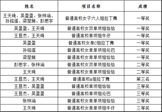 据悉,本次青少年国际标准舞锦标赛赛期三天,共吸引了市内外近200只队伍参加比赛。我校华艺拉丁舞社团从去年11月接到比赛通知以来,精心组织,在校团委艺术团王灿老师的指导下,刻苦训练,积极备战。赛场上,选手们面对强手毫不畏惧,沉着应战,最后凭借精彩的表现获得专业评审的肯定,取得了优异的成绩,充分体现了我校艺术教育的育人成果。